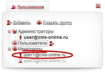 Чтобы добавить пользователя в другую группу, выберите нужную группу и нажмите .